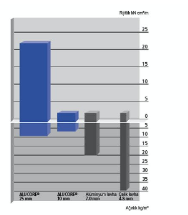 ALUCORE® sisteminin bileşenleri, klasik petek kompozit panellerin aksine kesintisiz bir prosesle yapıştırılır. Malzeme, kırılganlık derecesinde sertleşmez, fakat yüksek ürün kalitesinin temelini oluşturan sağlamlık ve dayanıklılık özelliklerine ve mükemmel bir ayrılma mukavemetine sahiptir. ALUCORE®, kaplama levhalarının çekme mukavemeti gibi yüksek mekanik özellikleri mükemmel işlenme ve estetik özelliklerle bir araya getirdiği için planlamacılar, mimarlar ve tasarımcılar tarafından çok beğenilir.