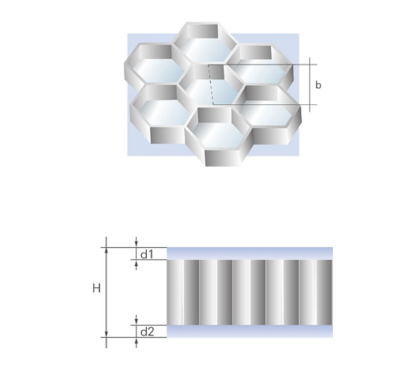 Standart çekirdek, AlMn alaşımlarından (EN AW 3003) üretilen alüminyum folyolardan oluşur. Hücre boyutu B: 9,3 mm.
